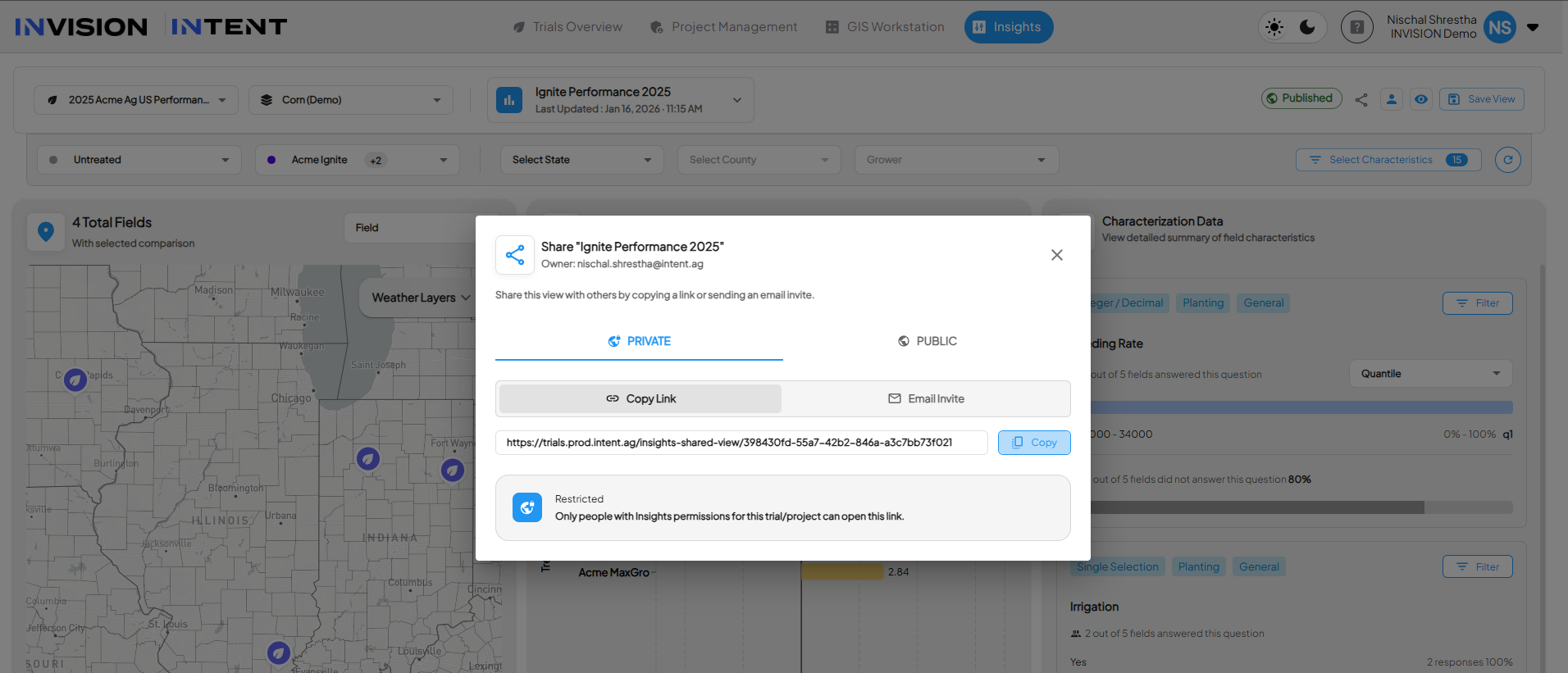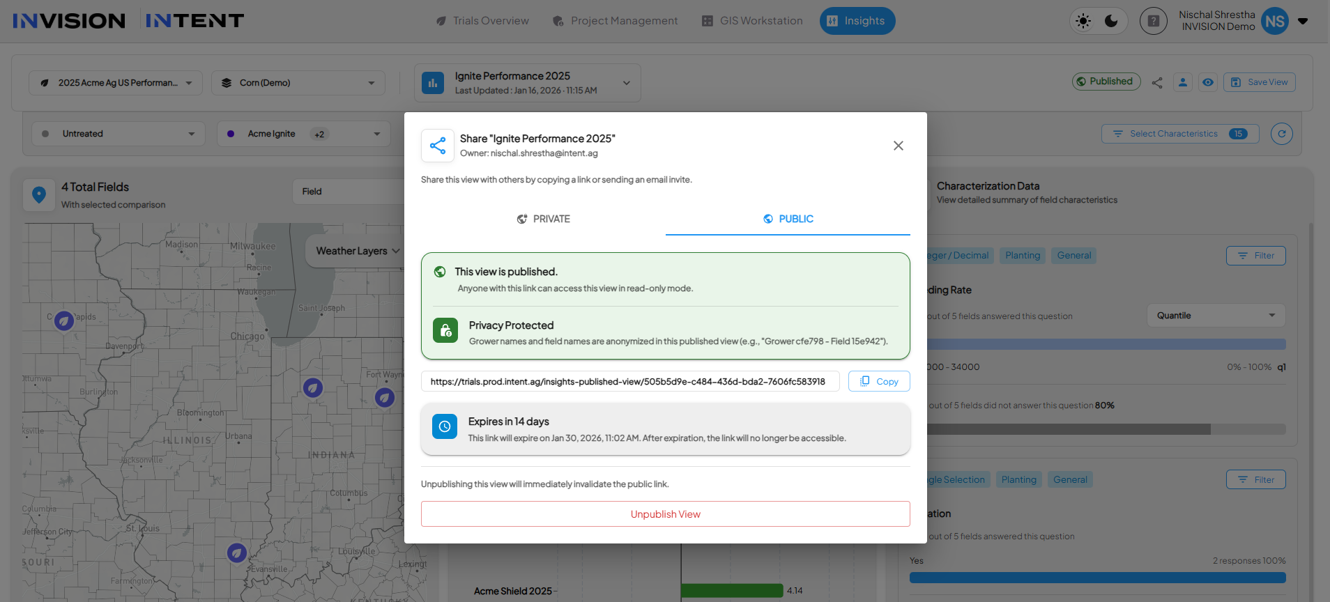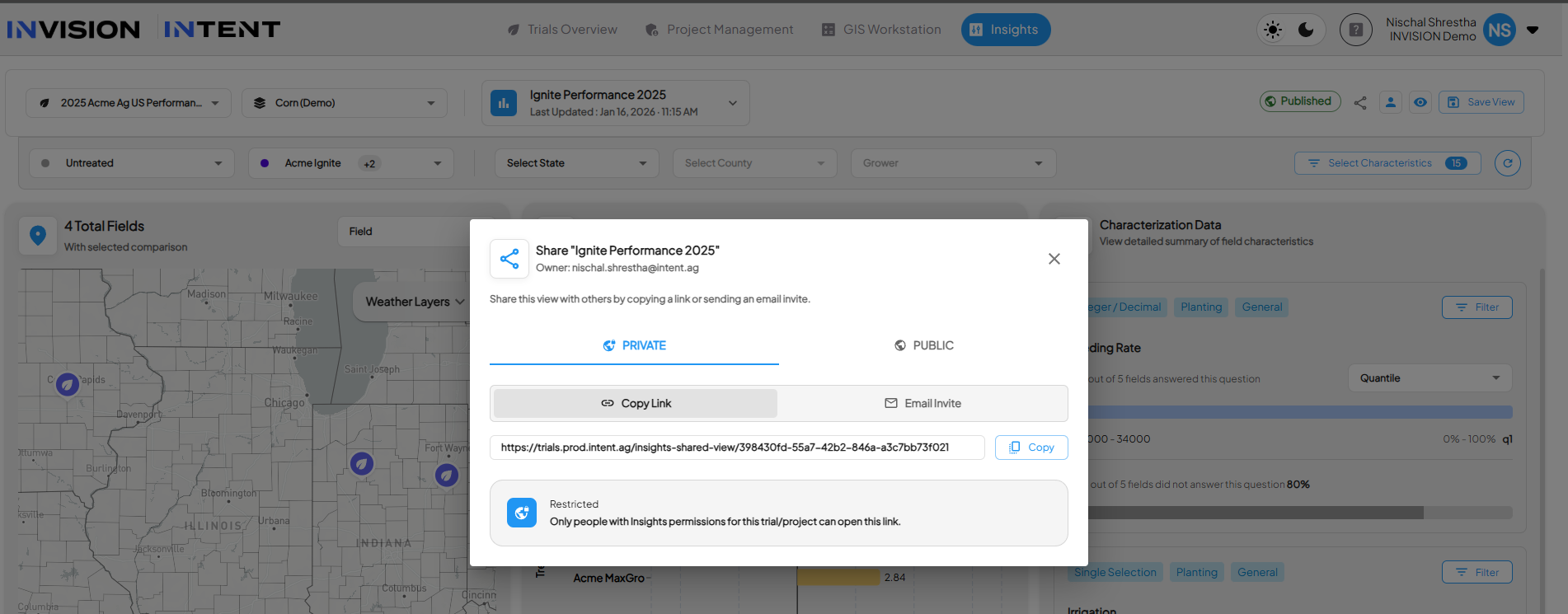 INVISION allows teams to share Insights analysis in two ways: Private Views for internal collaboration and Published Views for sharing results externally. This guide explains the difference between the two and walks through how to create and share each type.