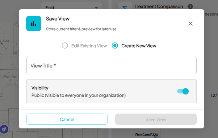 - Enter a descriptive View Title: for example, “Corn Fungicide – Loamy Fields” .
