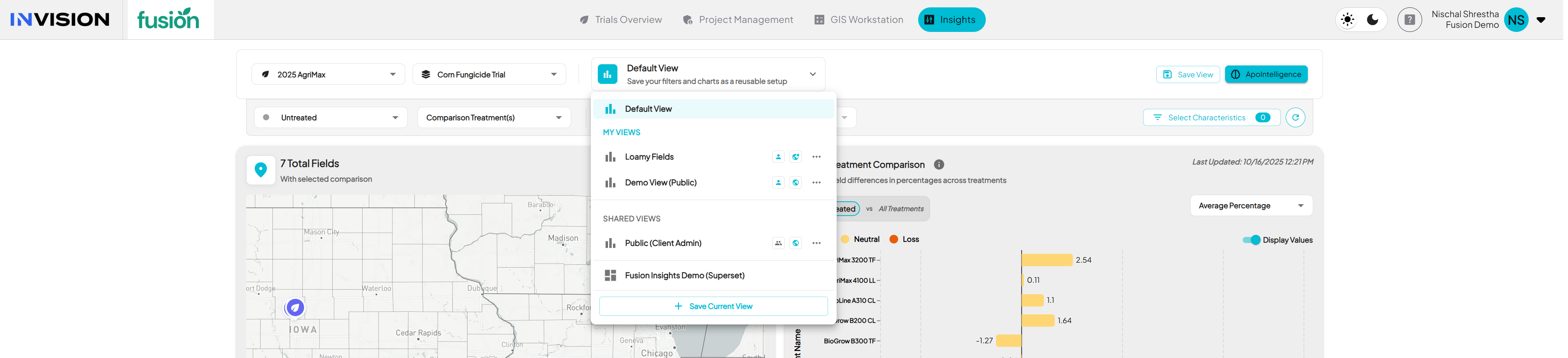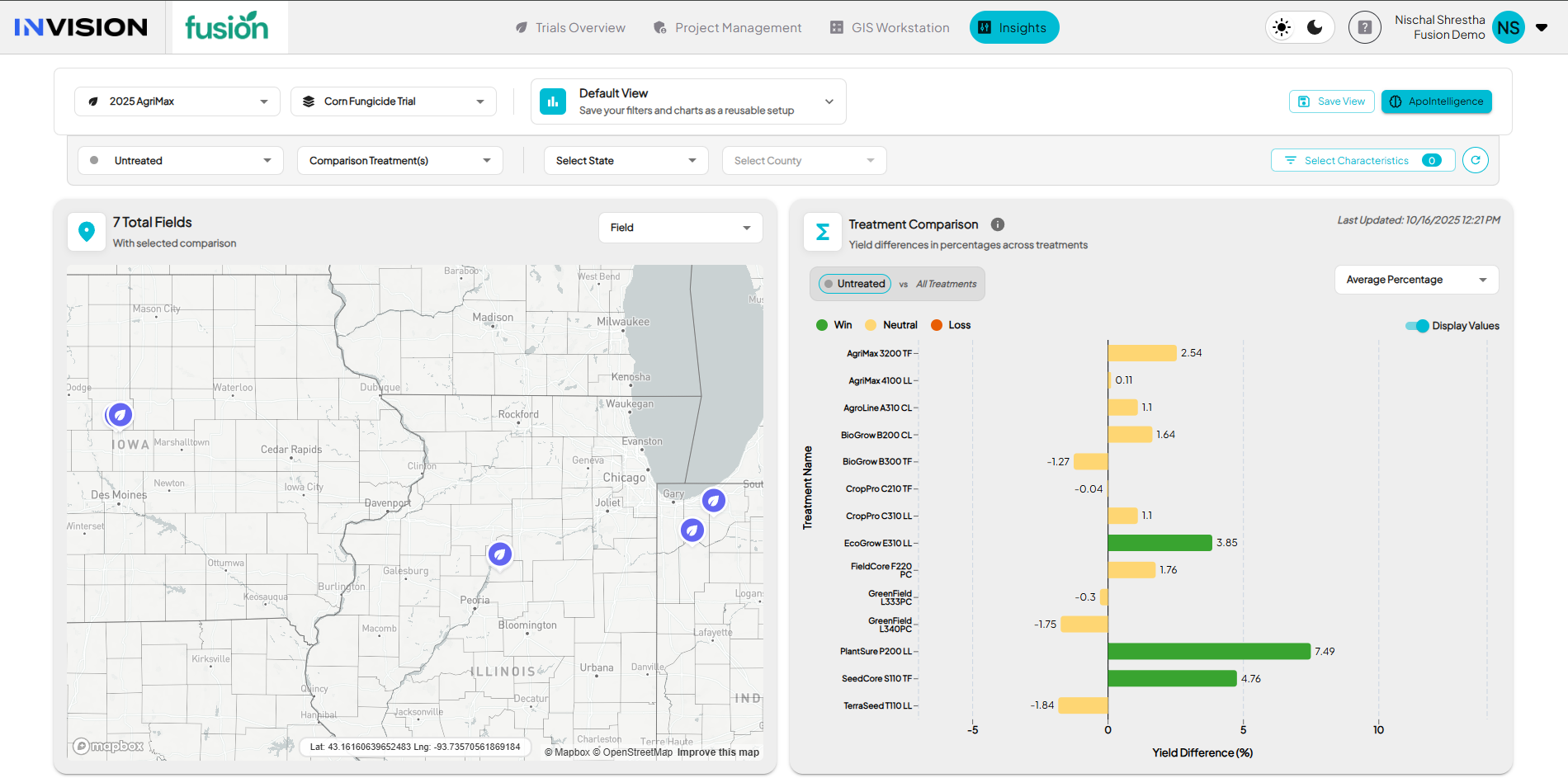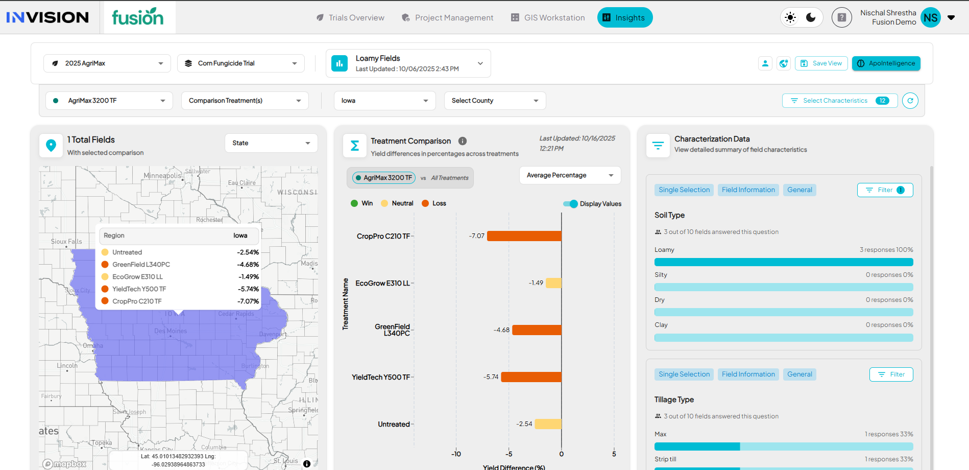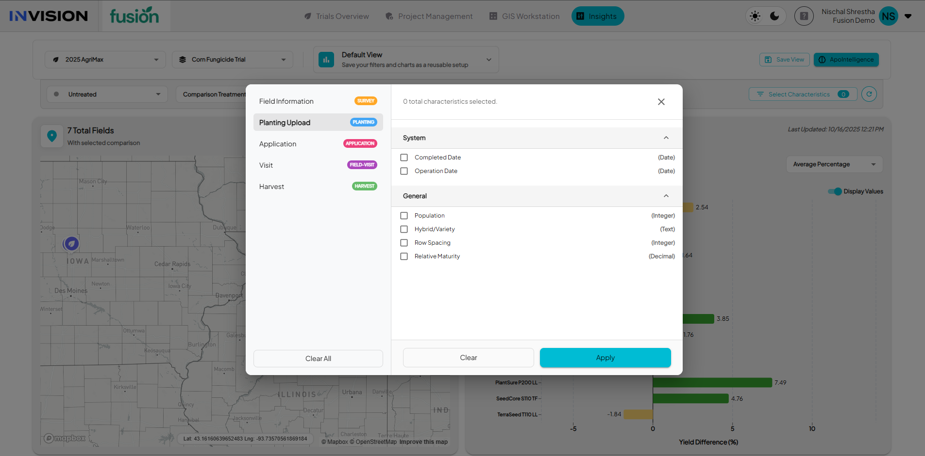 Each season, INVISION captures a large amount of structured data from trials. This includes products, management practices, soil types, planting and harvest dates, field visits, and performance results. Insights organizes and aggregates that data so it can be compared, summarized, and visualized for better decision-making. This type of information is called characteristics data.