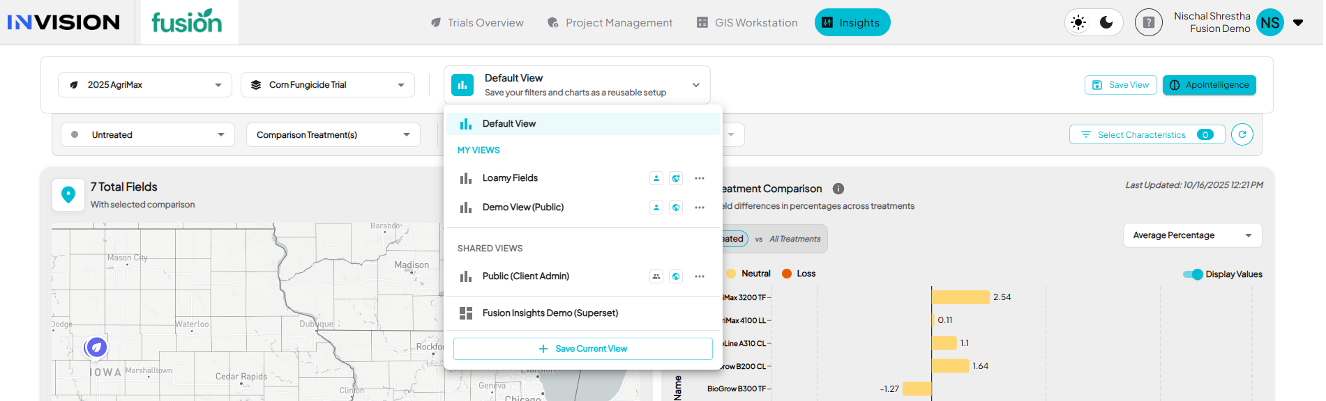 - Every view updates automatically when new field data or characteristics are synced into INVISION, so saved setups always reflect the latest information.